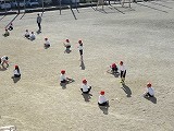 大なわとびではクラスの友だちと支え合う姿も見られるようになってきています。また、個々のなわとびでは色々な跳び方を楽しんだり、友だちと見合ったり教え合ったりする姿も見られます。