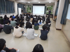 昨日,大池中学校の先生に来ていただき,日課,行事,クラブなど生活全般にわたって説明を聞いていました。