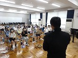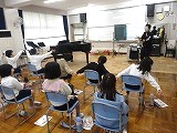 2年生が音楽で『世界がひとつになるまで』の曲にに取り組んでいました。順番に楽器を演奏したり歌を歌ったりしながら楽しんでいる様子でした。