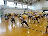 中学年の人たちは、辛い姿勢に耐えながらより良い姿をめざして花笠音頭の練習に取り組んでいました。