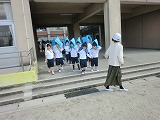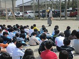 現在は、広い場所に出ても、転倒防止の観点から集合場所まで歩いて避難をします。(かけない)集合してからは、係の先生の話や教頭先生の話をしっかりと聴こうとする姿が素晴らしいと思います。
