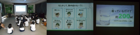 4年生では,発育測定の後,養護教諭から,熱中症について話を聴いていました。