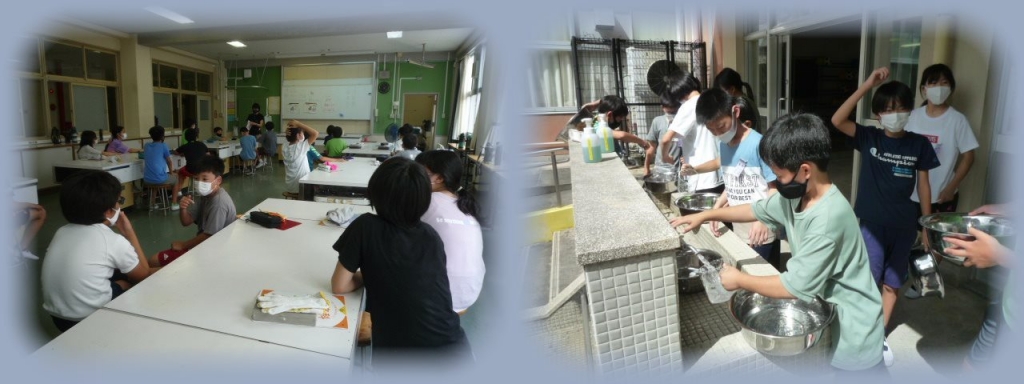 草抜きの後は、一人ひとり桶の中に水を入れて、汚れを落としました。