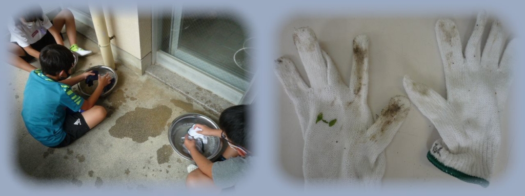 今日は雨が降った後なので、いつも以上にどろや砂が軍手につきました。