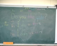 2年生のクラスでは、先生から「Do you like~?」と、尋ねられると、子どもたちは「Yes I do.」「No I don`t.」などと、ジェスチャーをしながら答えていました。