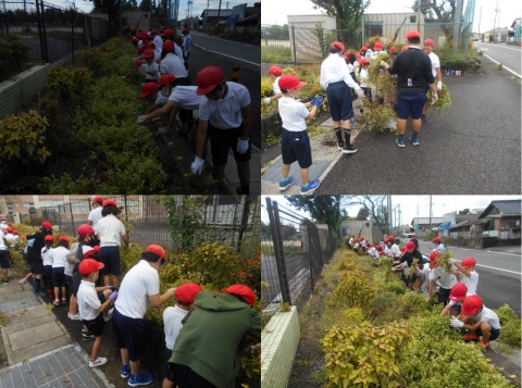 【1・6年生1組】連携花壇の草抜き