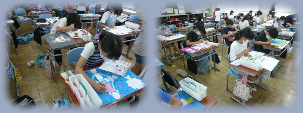 それ以外に、いじめ、ジェンダー、コロナ差別など、一人ひとりが決めたテーマが伝わるように構図を考えて描いていました。
