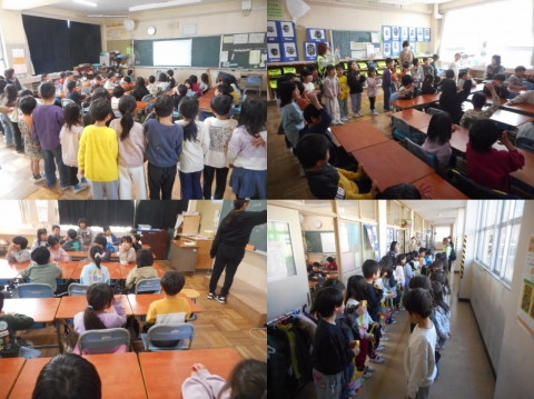 実際に来校し,1年生の授業の様子を見学しました。お楽しみ会の計画について話し合っていました。途中,何をするかという話の中で,担任が,1年生の子たちがやりたいもののなかから,「今日はジェスチャーゲームを実際にやってみます。」と言い,1年生の子たちが問題を出し,保育園の子たちが答えるという,参加型の見学になりました。とても盛り上がりました。勉強だけでなく,楽しい活動があることも感じ取ってもらったのではないかと思います。