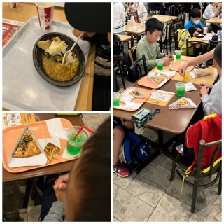 ピザ、カレーライスを食べているのを見つけました。どちらも美味しいといっていました。