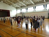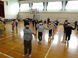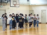20日(金)は、体育館で1年生と5年生が6年生を送る会の練習をしていました。