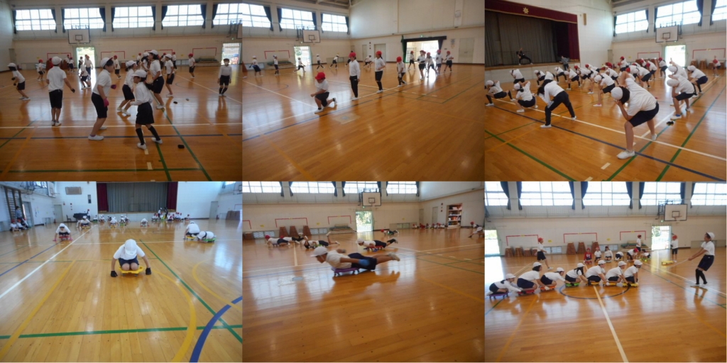 前半は、体操、後半はスクーターボードを使って、様々な乗り方で運動しました。