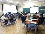 今週は、朝のチャレンジ週間でした。これは、朝学習の時間に、今まで学習したことを使って発展問題に挑戦します。子どもたちは、一人ひとり考えたり友だちと一緒に考えたり聴き合ったりしながら取り組んでいました。その後、先生が問題の解き方を解説したりみんなで考えたりしました。