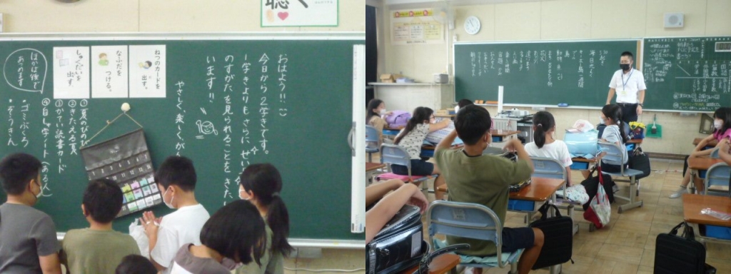 予定や漢字を書いたり、夏休みの思い出を聞き合ったりしていました。
