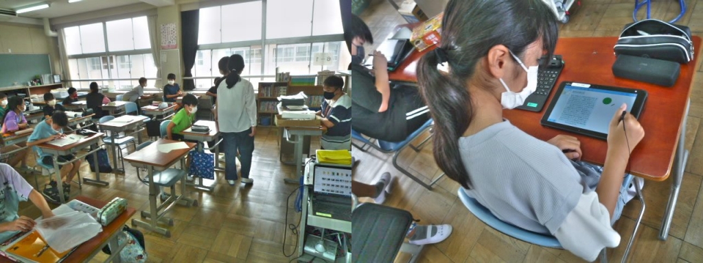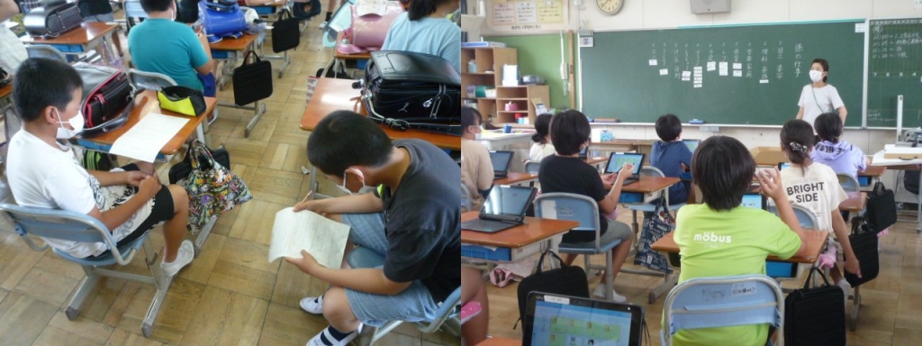宿題の確認をしたり、夏休みの思い出をタブレットで書いたりしていました。