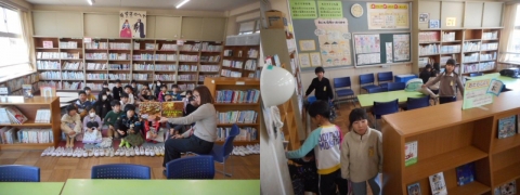 その時,ある子が,本を借りようと思って,取り出したときにたくさんの本が床におちてしまいました。すると,何も言わず,たくさんの子が集まって,本を元に戻していました。