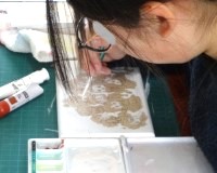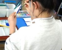 彫刻刀で立体的に文字や絵を彫り、色付けをしていきます。どの人も、色塗りや絵を描く時に、細かなところも丁寧に仕上げようと、慎重に描いたり何度も重ねて色を塗ったりしていました。その表情は、とても真剣です。