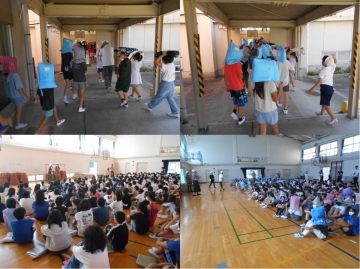 今日は,雨天時で体育館に避難するという想定で実施しました。