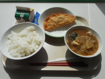 今日は「思い出いっぱいメニュー」から「津ぎょうざ」でした。エピソードには「皮がパリパリで、具を食べた瞬間、肉汁がいっぱい出てきたので、ごはんが進むくらいおいしかった」「初めて給食に出た時、ぎょうざがすごく大きくてびっくりした」というものがありました。今日の津ぎょうざは,調理員さんが給食室でたねをこねて、ひとつずつ皮でつつみ、油であげて、手作りでした。