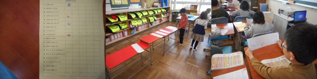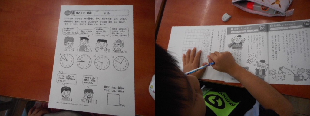 2年生は時計の問題、3年生は、文章をまとめて書く、4年生は、割り算の問題でした。