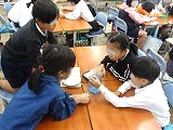 4年生は、空気を温めた時に、体積が変化する実験を行いました。