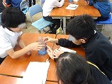 試験管の口に石鹸水でまくを作り、手やお湯で温めてその観察をしていました。中には冷やした時にまくが下がり、体積が減る様子を観察できた人もいました。