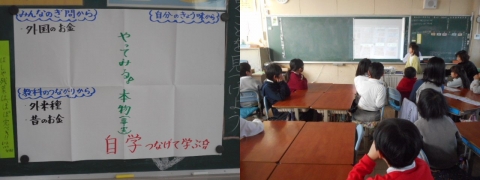 今日発表した子は,その子の発表を受けて,おじいちゃんは外国のお金をたくさん持っていることを知っていたのでしょう。