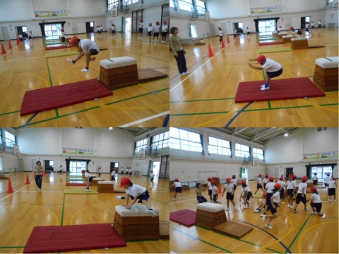 子どもたちは夢中になって取り組んでいました。中には,互いの着地位置を意識して競い合いながら取り組んでいる子もいました。