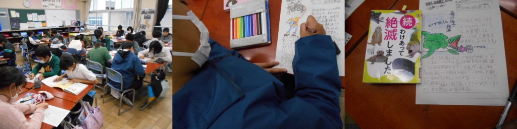今日は6年生で、お気に入りの本をカードに書いていました。