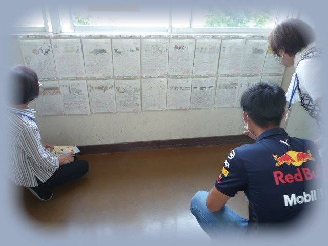 視聴覚室に戻ってからは、委員の方からは、作品の色使いから、子どもたちの元気な様子、心が安定している様子がうかがえましたとお褒めの言葉をいただきました。また、落ち着いて学習に取り組んでいる様子、タブレットを積極的に活用して授業を行っている様子なども、感想として出されました。