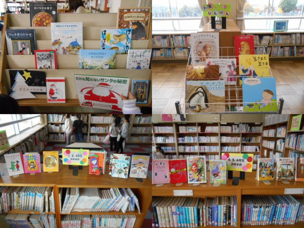 正面には、人権、少し奥に1・2・3年生用、4・5・6年生用に様々な本が、並べてもらっています。