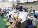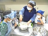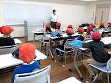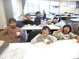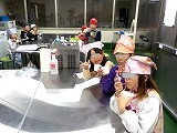 農業センターの部屋でお話を聞いた後、2つのグループに分かれてサツマイモに関するクイズをしていただいたりサツマイモを潰す作業を行うアイスクリーム作りを体験させていただいたりしました。できたアイスクリームを食べると、サツマイモの味がしっかりして、子どもたちの笑顔があふれていました。