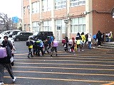今朝は道路の一部が凍結していた場所もあったため、児童の危険を回避するため集団下校を行いました。地区によっては教職員が立ったり見回ったりしました。