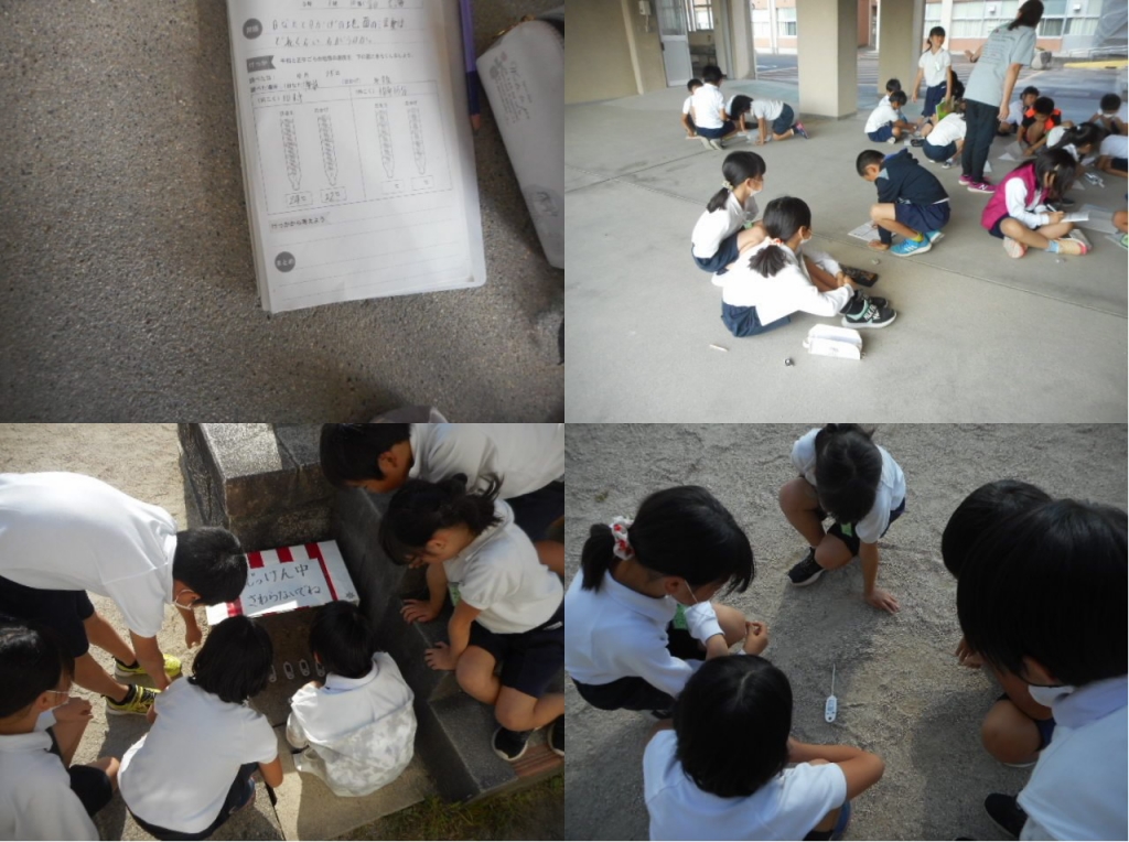 3年生が、理科で、ひなたとひかげのちがいを実験していました。