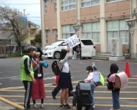 地区別児童会では、一人ひとりの名前や新しいクラスの確認をしました。また、登下校の際の安全な歩き方の確認もしました。さらに、どの地区でも交差点での「ハンドサイン」の指導も行いました。