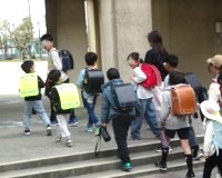 集団下校では、それぞれの地区まで教員と一緒に歩きました。班長や副班長の人など、上の学年の人たちが1年生の手を引いたり声を掛けたりしながら歩く姿がとても印象的でした。