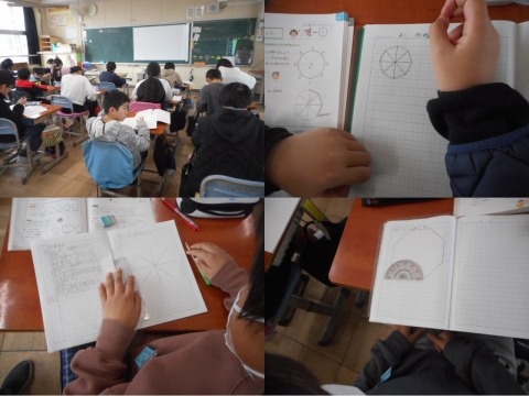 内角を測って描くやり方,少しの時間だけだったので,この方法しか見つけられませんでした。
