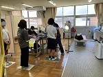歯科健診を行いました。別の件で来校されてみえた連合自治会長さんやPTA会長さんに健診の様子を見ていただいたところ、「静かに待てていますね。」とおっしゃってくださりました。