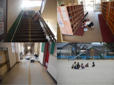 しゃがんで頭を守る行動をきちんととっていました。