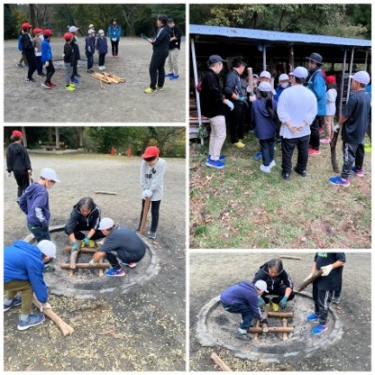 係の子たちは、学校から駆けつけてくれた職員と共に、井桁くみをします。