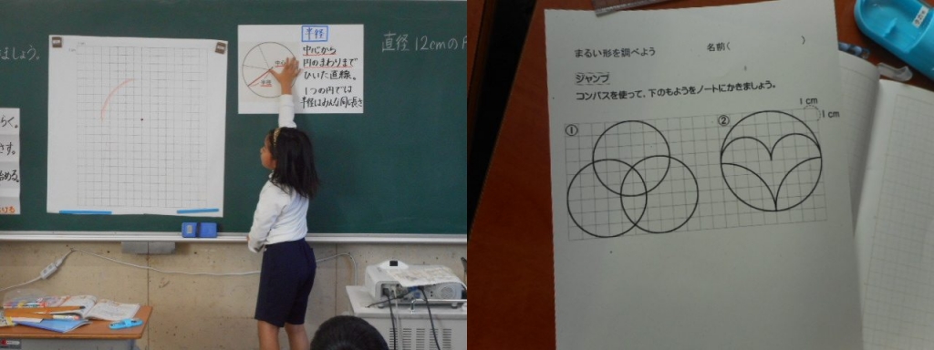 子どもたちは、直径と半径を思い違いをしていたようです。子どもたちの話し合いによって、気づいていきました。