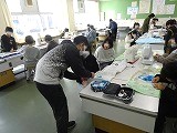 5年生は、家庭科でミシンを使ってエプロンを作りに取り組んでいます。
