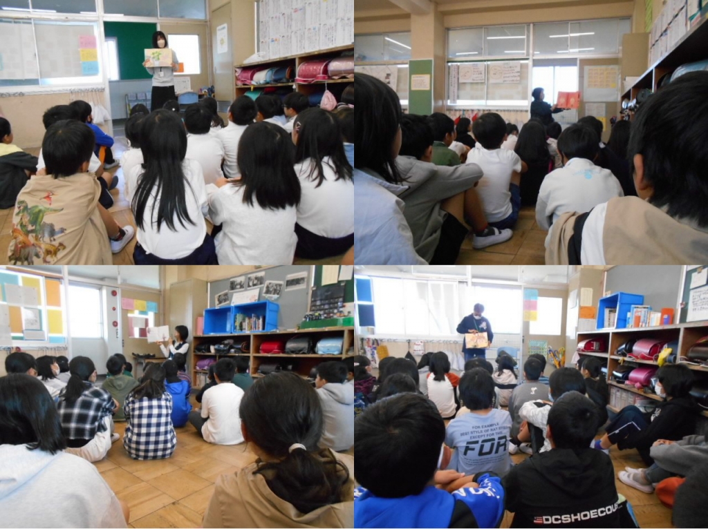 今日は、3・6年生で、読み聞かせサークル「かぐやひめ」さんの皆さんに、読み聞かせをしていただきました。