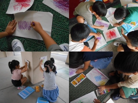 あるところをこすっているときには,「これ。花火や。」などと言いながら写していて,子どもたちは何かに見立てるということも上手だなと思いました。