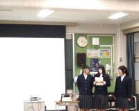 今日の5限目に、大池中学校から3名の生徒さんと先生方が来校し、中学校の説明をしてくれました。