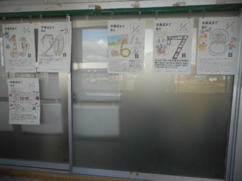6年生の廊下に,「卒業カレンダー」の出来上がった分が掲示してありました。