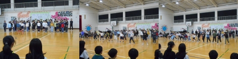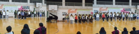 合唱では,動きながら歌っていました。どちらの曲も,高音が体育館中にとても美しく響いていて,すてきな歌声でした。