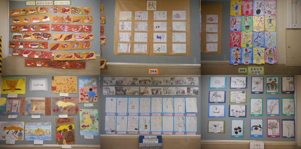 すべての子の作品をこれだけのスペースで掲示できないので、各学年の廊下に掲示してあります。