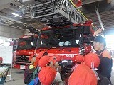 そしてポートビルでは、大きなクレーンやコンテナ等を見て、驚いている姿がありました。最後の中消防署では、消防車を間近で見学させてもらいました。