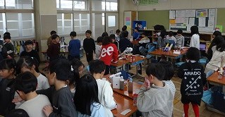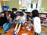 2年生の人は、自分たちの作ったおもちゃをアピールして1年生の人を呼び込んだり遊び方を説明したりしながら、一生懸命運営していました。1年生の人たちは、おもちゃの使い方の話を聴いて楽しめていました。