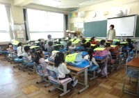 1年生の初めての学習は、持ってきたものをランドセルから出して朝の準備をすることや下駄箱の使い方などでした。